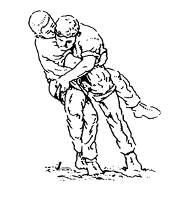 Le saut croisé est certainement une des prises les plus simples. Le lutteur exécute une rapide feinte, se tourne instantanément à gauche ou en arrière, saute avec sa jambe droite, le plus bas possible derrière la jambe droite adverse, pousse avec le haut du corps l'adversaire rigoureusement sur le dos au sol.