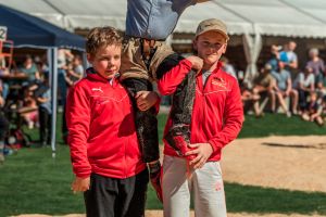 Lütolf Marius gewinnt nach 10 Sekunden mit übers Knie ableeren.