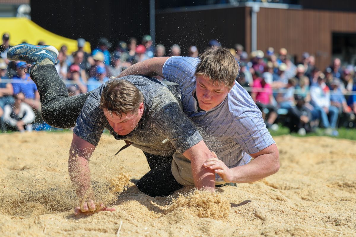 06.04.2026, Frühjahrsschwinget Zäziwil, Wyss Sven (l.) - Aeschbacher Matthias (r.)