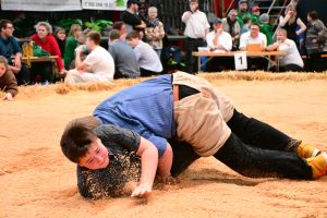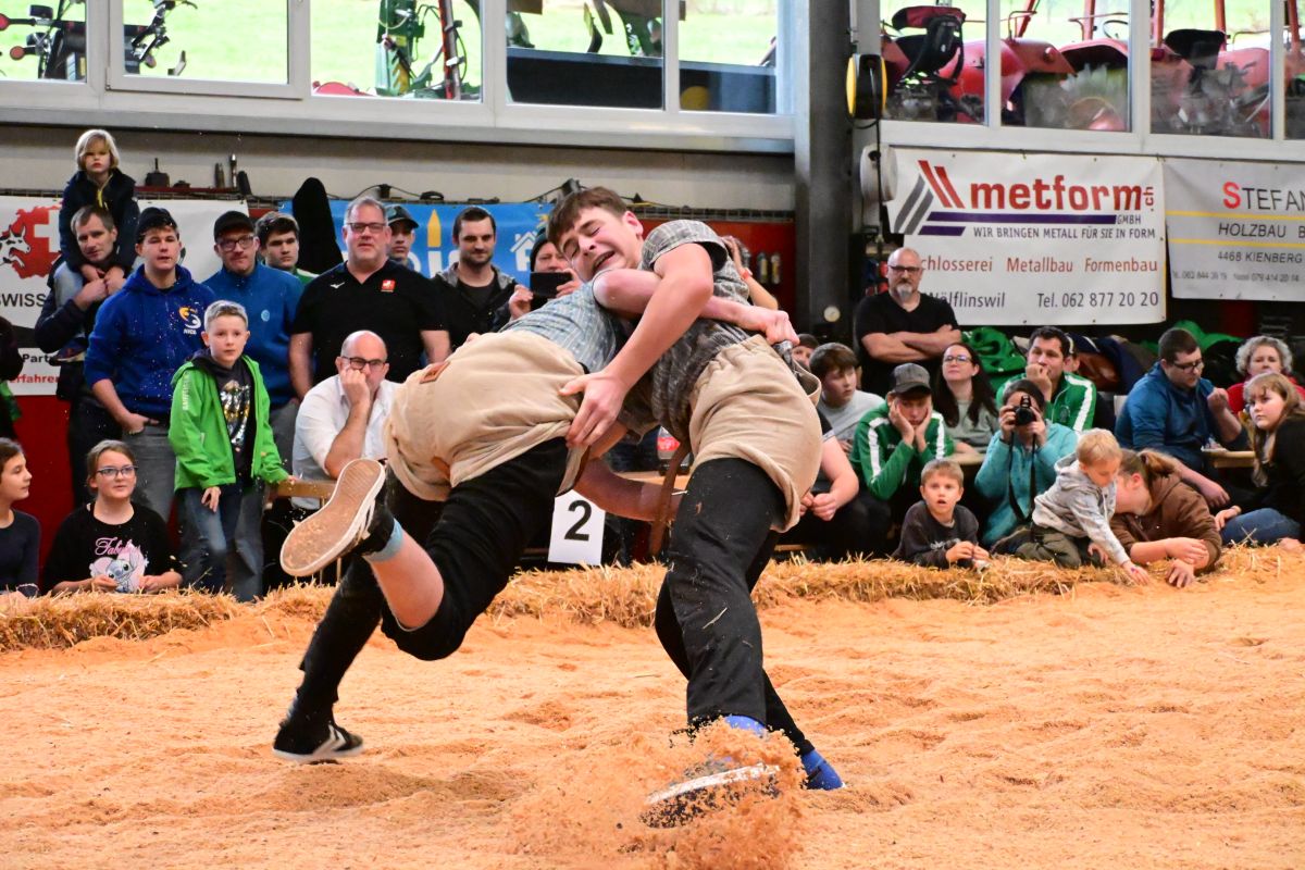 Der Schlussgang der ältesten Kategorie am diesjährigen Bänzeschwinget endet nach einem harten Zweikampf zwischen Gauch Florian und Bühler Jonas gestellt.