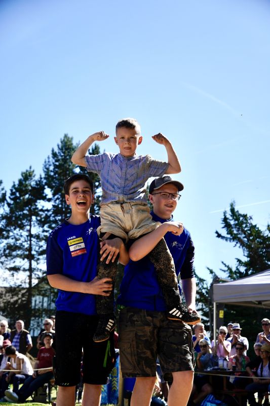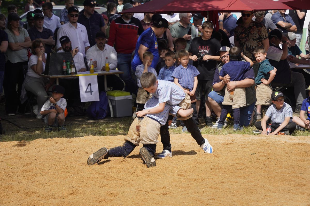Am Schwinget im Zurzibiet 2026 bot Schwingklub Zurzibiet auch den Allerjüngsten, den "Piccolos" mit den Jahrgängen 2019/2020 die Möglichkeit, erste Wettkampferfahrungen zu sammeln. Neunzehn fünf- und sechsjährige Schwinger nutzten diese Gelegenheit. Der Schwingplatz 4, eigens für die Piccolos reserviert, war am Nachmittag ein Publikumsmagnet. Die Kleinsten übten sich in den wichtigsten Regeln im Schwingsport: sich die Hand geben, dem Gegner in die Augen schauen und als Sieger dem Verlierer das Sägemehl vom Rücken wischen. Nicht immer klappte dies auf Anhieb, aber die Piccolos zeigten, dass die nächste Schwingergeneration bereitsteht. Im Schlussgang standen sich nicht nur zwei Klubkollegen, sondern gar Zwillingsbrüder gegenüber: Liam und Alessio Marolf aus Hettenschwil wurden von Jungschwingerleiter Simon Märki mit den Worten: "Geniesst es!" in den Schlussgang geschickt. Und das taten sie, fast schon schien es nebensächlich, wer von beiden am Schluss von den Klubkollegen geschultert werden konnte. Diesmal konnte Liam den Festsieg erschwingen.