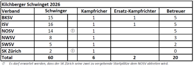 Verteiler Schwinger und Kampfrichter am Kilchberger 2026 Ebenso wurden die Anzahl Schwinger und Kampfrichter pro Teilverband für das Kilchberger 2026, auch hier wie von der TK ESV vorgeschlagen, bestimmt.