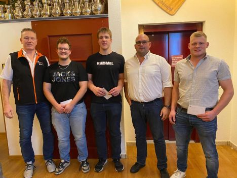 Adrian Käser mit den geehrten Schwinger (v.l.n.r.) Matthias Kunz, Loris Tschannen, Stephan von Büren und Kevin Schori